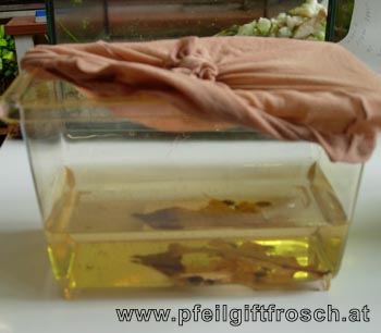 Daher wechseln wir alle drei bis vier Tage das Quappenwasser. Wir verwenden dazu