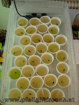 | Einzelaufzucht im beheizten Wasserbecken | Gemeinschaftsaufzucht in Faunaboxen | Einzelaufzucht |