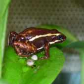 Einige Arten wie D. Ventrimaculus färben bereits vor dem Durchbrechen der Hinterbeine