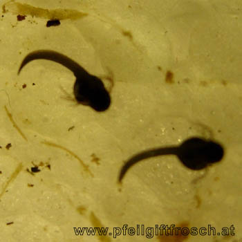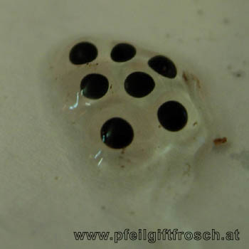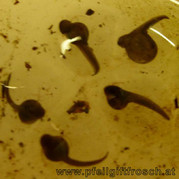Die Entwicklung der befruchteten Eier zu Kaulquappen, die die Galerthülle durchbrechen, dauert 15 bis 20 Tage.