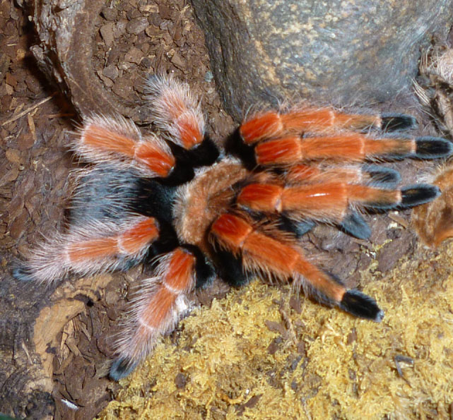 ca. 7 cm, Deutscher Name: Mex. Rotknievogelspinne